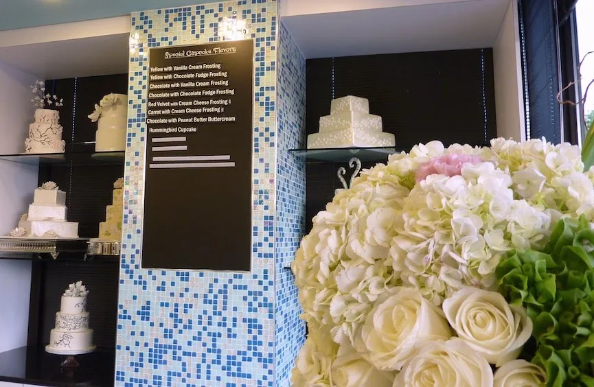 A couple of weeks ago, I wrote a post about the lovely Fluffy Thoughts Cakes, new to Mclean, Virginia. I gushed about owner Lara Stuckey's apple bacon cupcake with maple frosting. I dropped by for their grand opening party this week, sampled more delicious treats (check out the cream puffs with caramelized sugar garnish) and took some photos. In my last post, I also complemented the shop's charming interior decor, which I can happily share with you now.